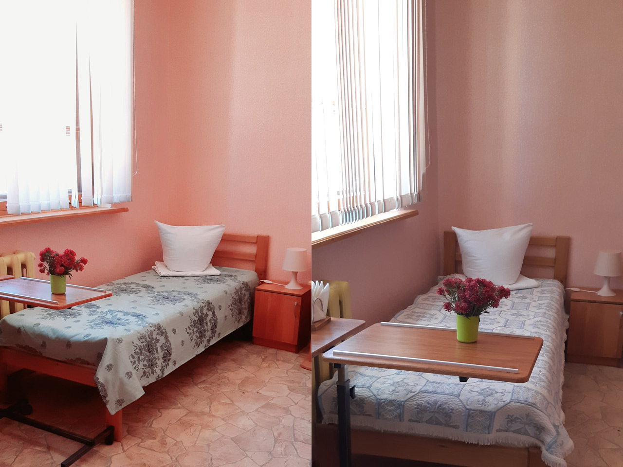 При поступлении в дом престарелых в Краматорске, каждый пенсионер может выбрать для себя 1,2, или 3-х местную комнату. Каждая комната оборудована душем, санузлом, и необходимой мебелью. Кровати и мебель, которые располагаются в комнатах постояльцев, разработаны специально для людей преклонного возраста и инвалидов, что позволяет обеспечить самый высокий уровень комфорта.